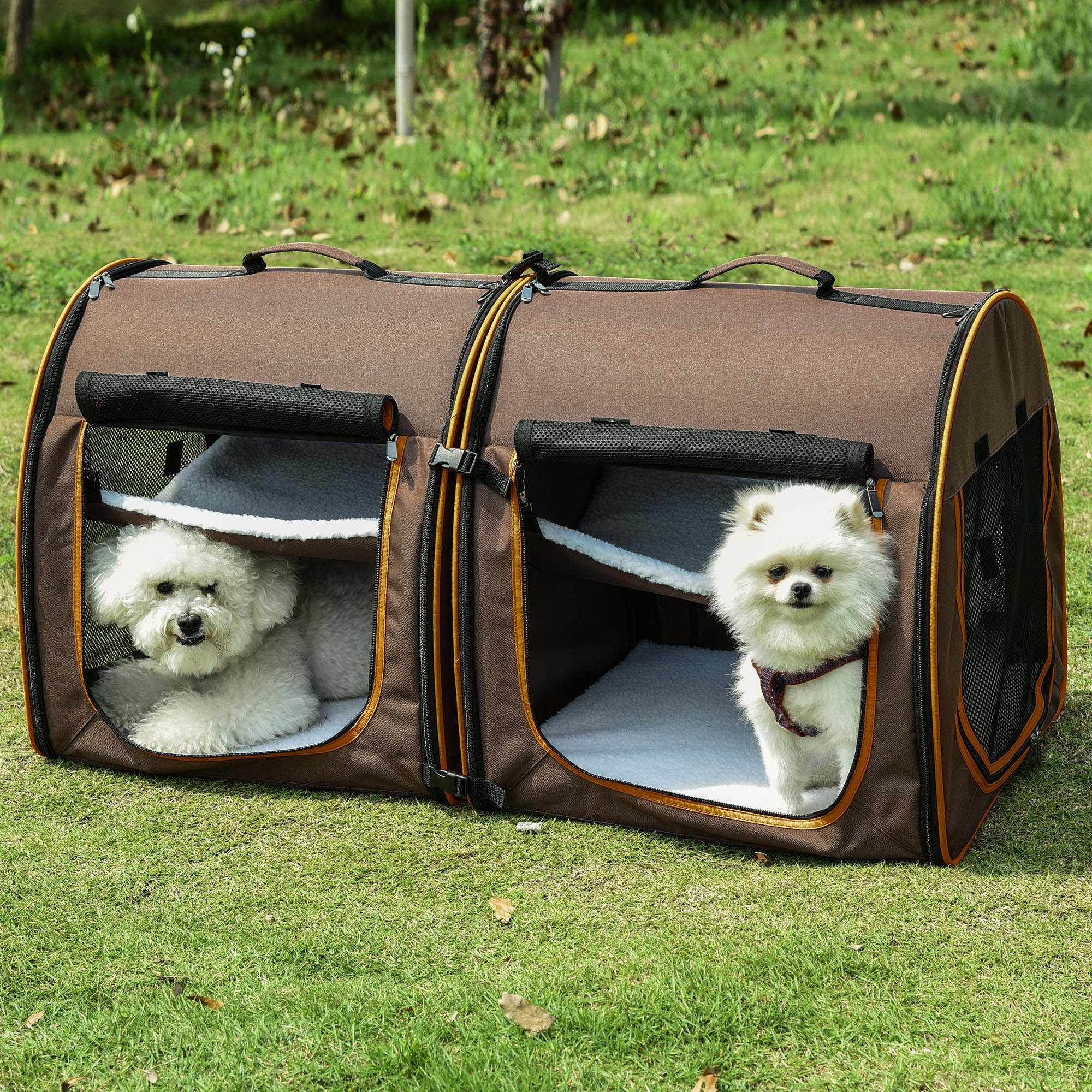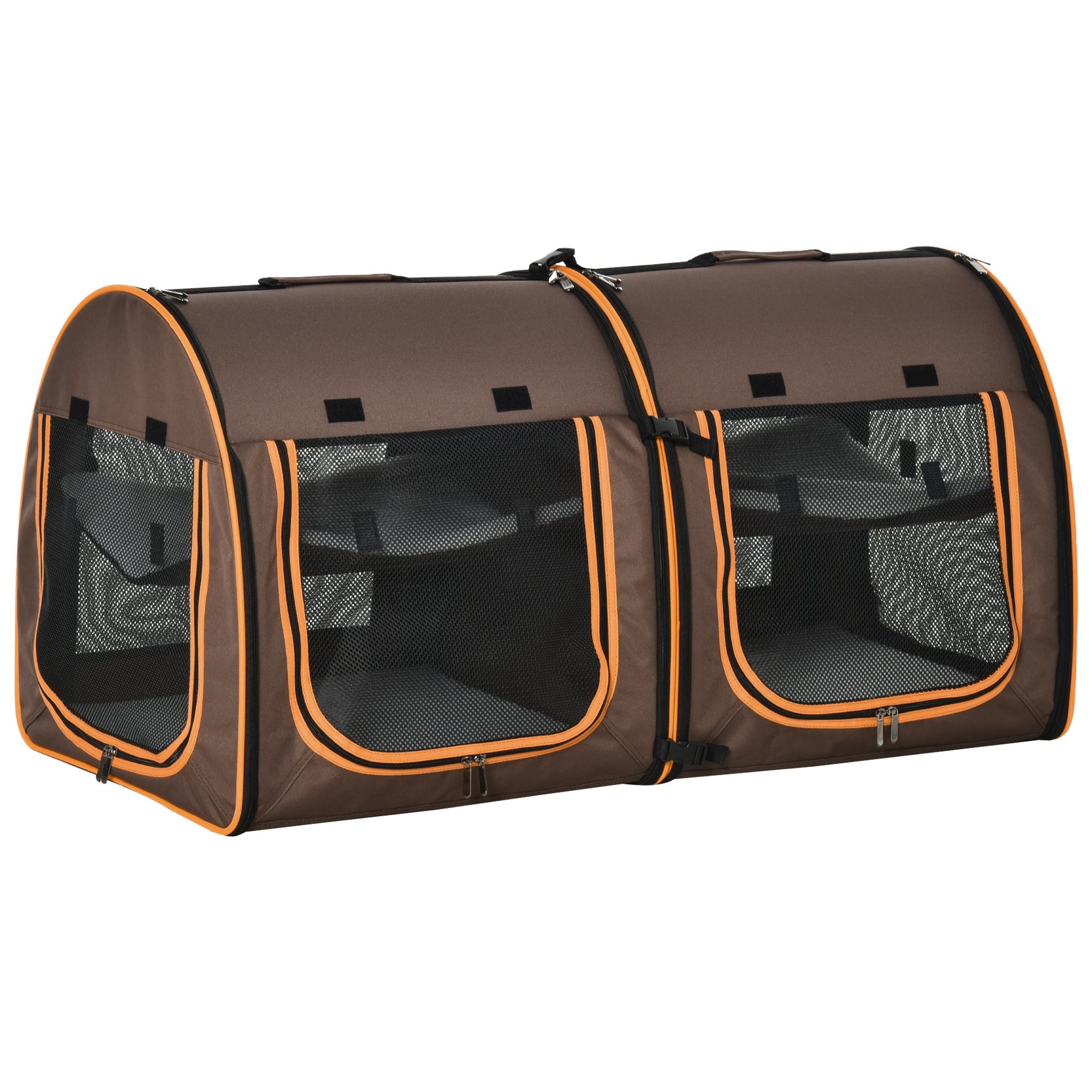PawHut Portable Cat Cage 39 Twin Compartment Show House with Soft Cushions Storage Bag Brown PawHut Portable Cat Cage 39 Twin Compartment Show House with Soft Cushions Storage Bag Brown PawHut Portable Cat Cage 39 Twin Compartment Show House with Soft Cushions Storage Bag Brown