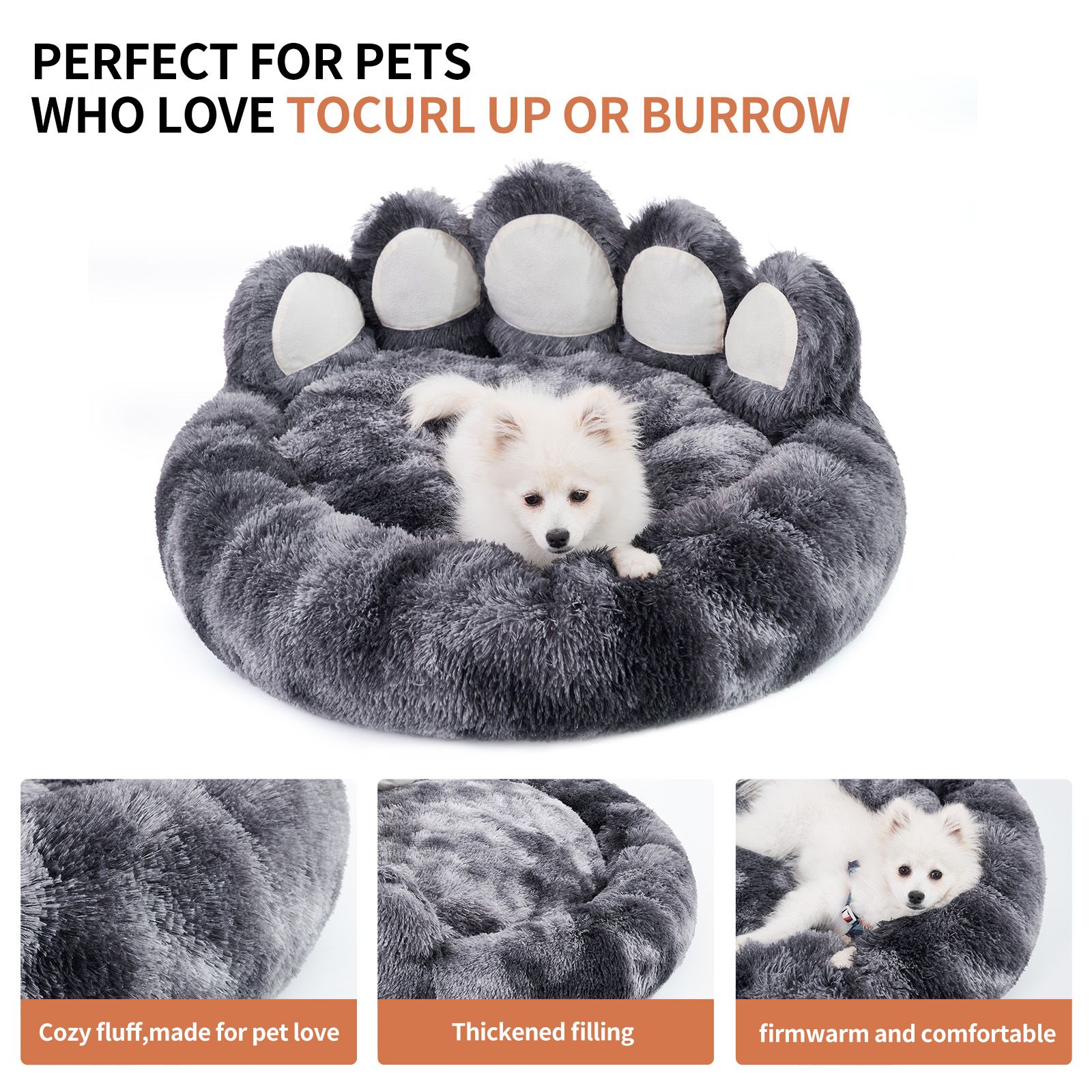 Plush Comfort in a Bear Paw Design: Indulge your pet in the adorable uniqueness of our bear paw-shaped dog beds, where interesting design meets fashionable aesthetics.Resilient Padding, Lasting Support: Our pet bed is equipped with deluxe padding that ensures resilience, even after compression during transportation, maintaining elasticity and preventing collapse.Trendy Tie-Dye Colors Bed for Dogs: Elevate your pet's space with our newly designed tie-dye series, offering a fashionable and dirt-resistant solution for added style.Long Plush Material for Ultimate Comfort: Crafted from long plush material, PETART dog beds' locks in your pet's temperature, ensuring warmth for a deep and cozy sleep experience.Deep Sleep: PETART Dogs Bed Embrace the all-around surround design that creates a cozy space for deep sleep, providing an comfort haven for your pet's peace of mind.Perfect for Small to Medium Dogs: Tailored for small to medium dogs, this bed offers the ideal blend of comfort and security for your furry friend.Versatile Pet Furniture: Ideal for both dogs and cats, our bed complements any pet-friendly space, providing a snug retreat for relaxation.Restoring Upright Shape After Unpacking:To ensure the bear paw bed maintains its upright shape after unpacking, follow these instructions: Knead the filling to distribute it evenly and let the bed sit undisturbed for 24-48 hours to allow the filling to fully expand. If possible, place it in sunlight to aid in restoring its original shape. If the bed appears less upright, flip it 360° so the non-slip bottom is facing up. Allow it to sit this way for a day before flipping it back to help restore its upright position.